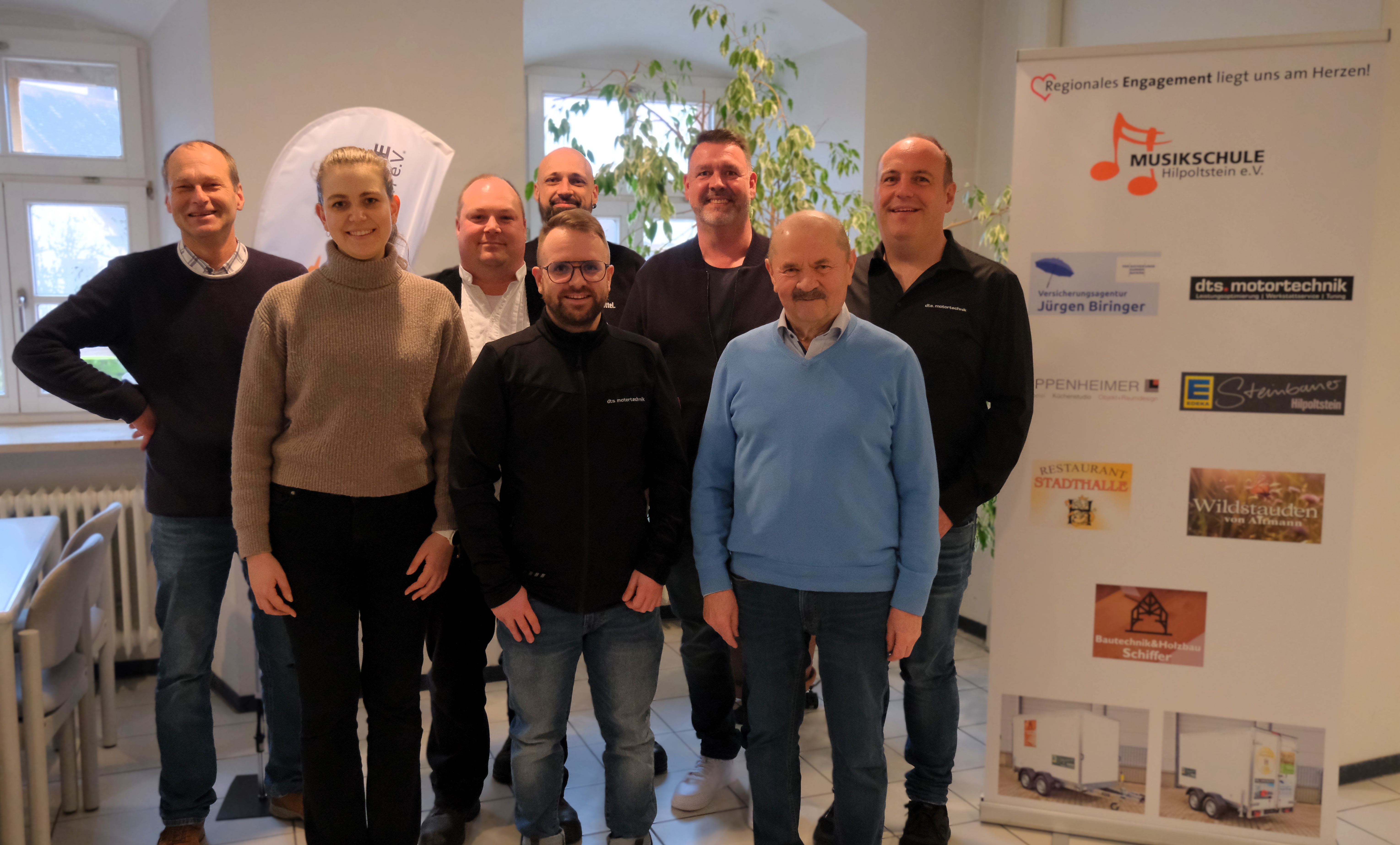 Seit Anfang des Jahres kann die Musikschule Hilpoltstein einen Autoanhänger ihr Eigen nennen. Für viele Veranstaltungen und Konzerte, die die Musikschule mehrmals im Jahr durchführt, ist immer wieder auch eine große Anzahl an Instrumenten und technischem Equipment erforderlich. Um dieses sicher zum Veranstaltungsort und auch wieder nach Hause zurück transportieren zu können, ist jetzt durch Initiative und Unterstützung der Firma Promobil ein zweiachsiger Kastenanhänger der Marke Brenderup angeschafft worden. Ermöglicht wurde der Erwerb des Anhängers, dessen Wert einschließlich Folierung rund 14.000,- € beträgt, durch die Unterstützung von EDEKA Steinbauer, Blumen Altmann, DTS Motortechnik, Restaurant Stadthalle, Bautechnik und Holzbau Schiffer, Schreinerei Pappenheimer sowie der Versicherungsagentur Jürgen Biringer aus Freystadt. |